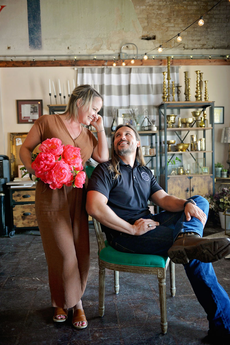 “I remember taking a picture of her at lunch and telling her, ‘You’ve got this, Kayli. You’re going to look back at this picture one day and wonder what you were worried about,’” Derek said, seated next to Kayli in the couple’s current floral shop on the San Marcos square.