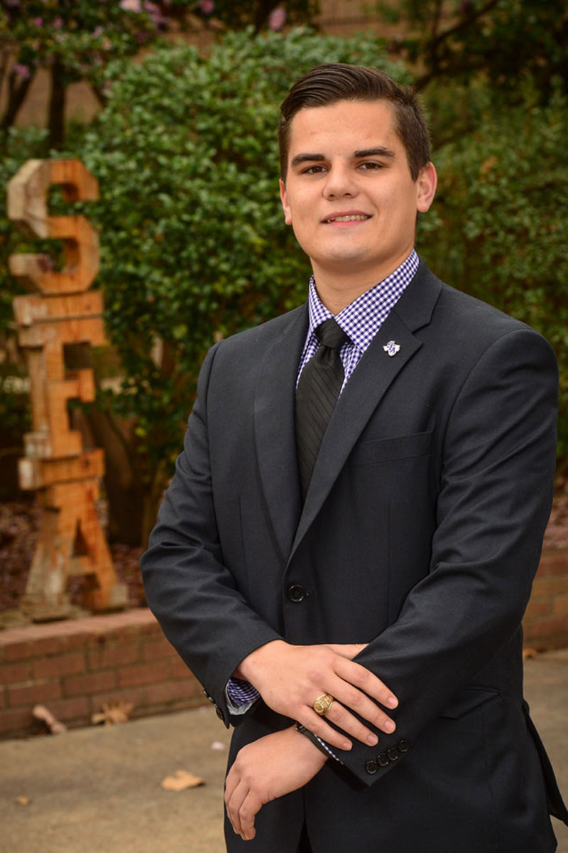 A 2016 graduate of Douglass High School, Spies, who received the Stan McKewen Mr. SFA Award, is a senior accounting major and the son of Mark and Stephanie Spies.