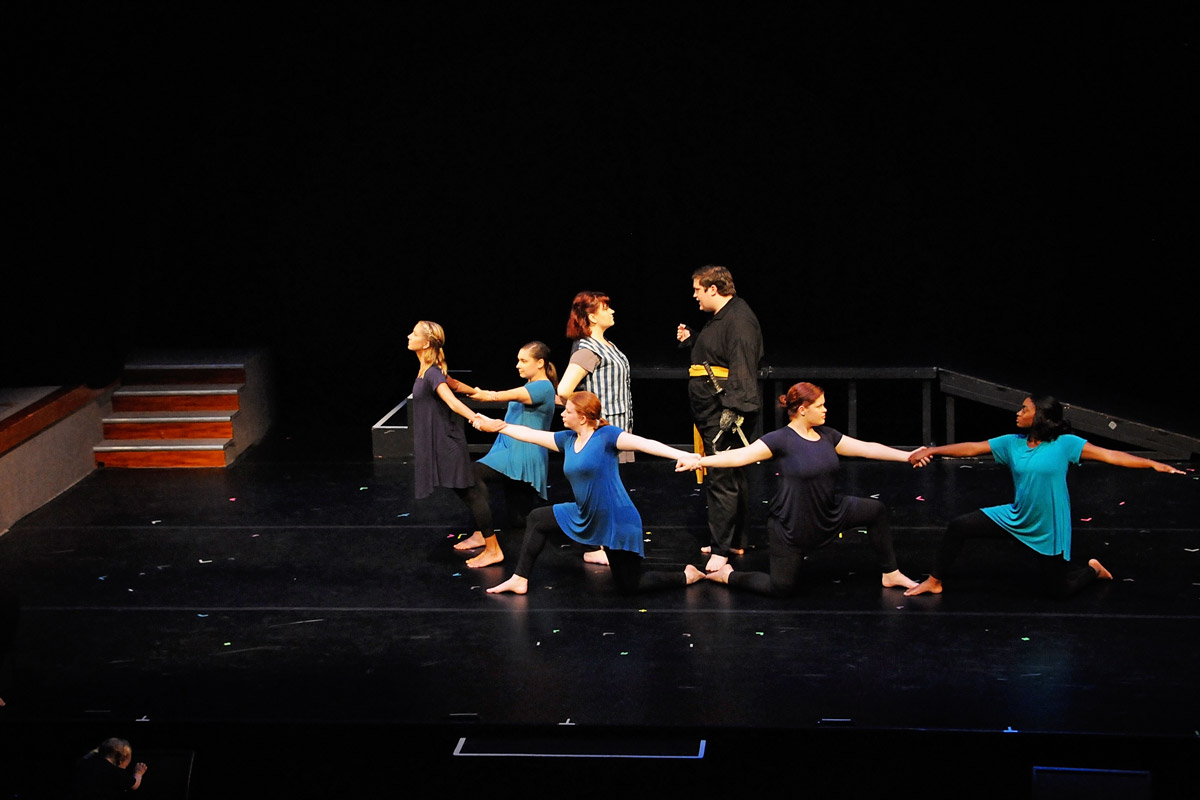 One of the highlights of the show was dancers joining hands to create a virtual ship ferrying several of the cast members.“Heather had the idea to turn our ‘ship’ sideways and have the ‘railings’ kneel. It is exactly why I use collaborators — she took my original idea and made it so much better,” Bacarisse said. “Heather understood what I was trying to express and used her expertise to create something stunningly evocative of a ship.”