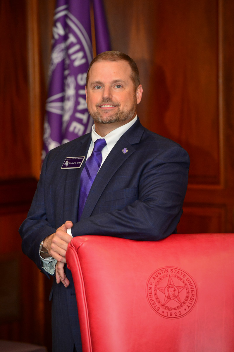 Dr. Scott Gordon arrived on campus Sept. 16 for his first official day as SFA’s ninth president. Since then, he has been busy familiarizing himself with Nacogdoches and getting to know SFA’s students, faculty and staff, and community members.