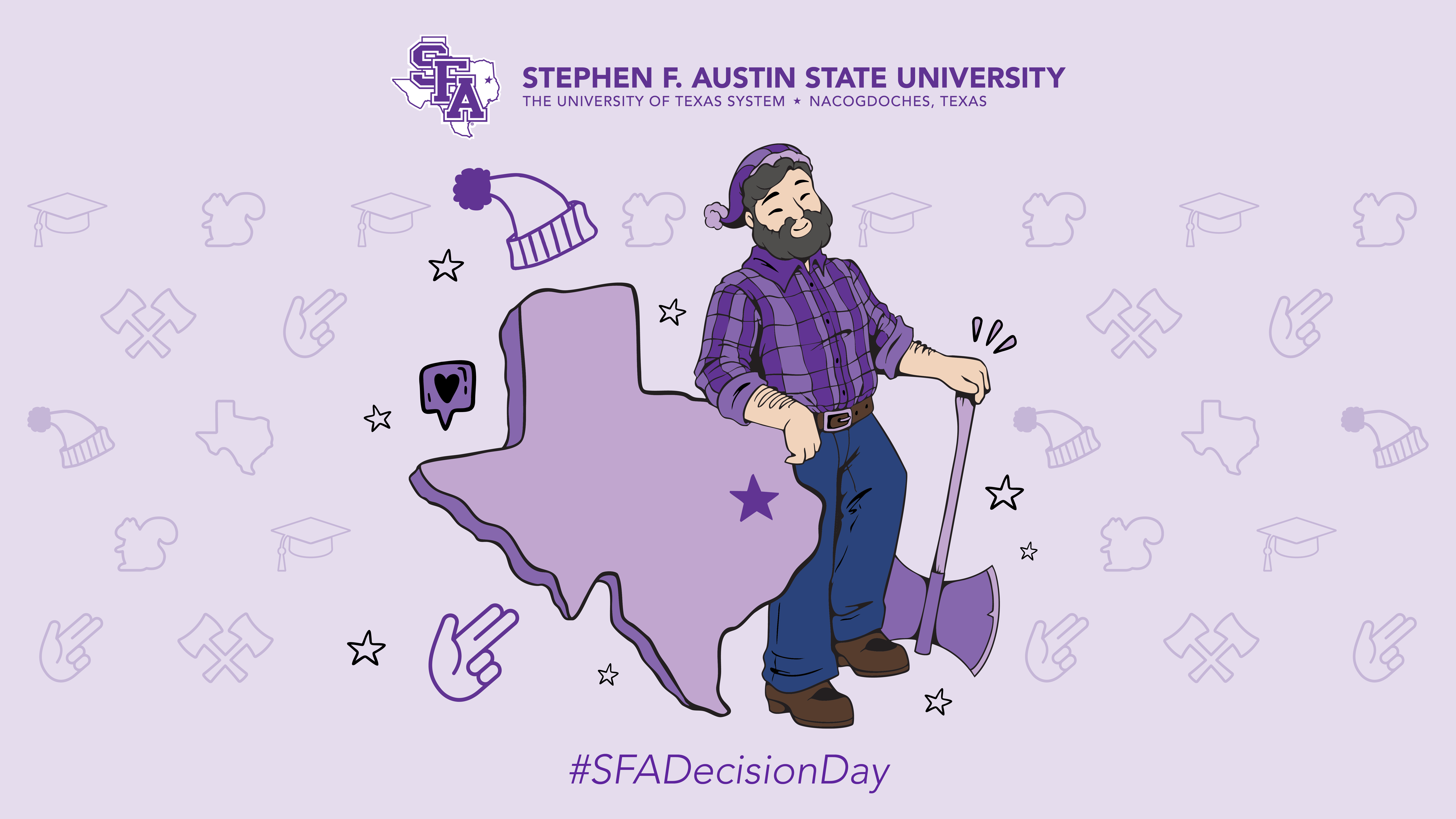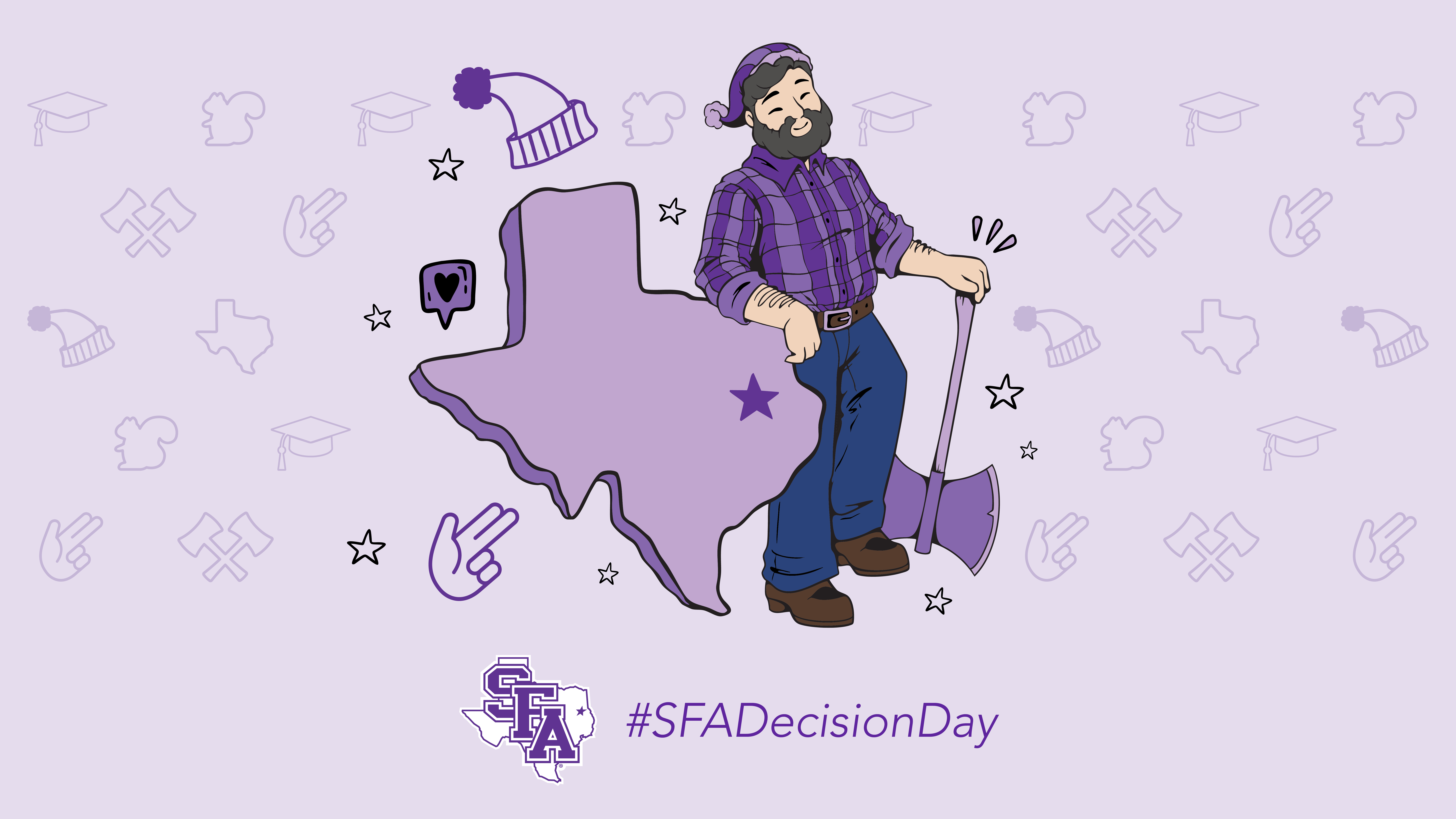 We have a collection of exciting downloadable graphics to help you tell the world about your decision to become a Lumberjack. Tag your posts with #SFADecisionDay for your new Lumberjack family to join the celebration and get ready to add a lot more purple to your closet!