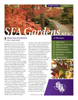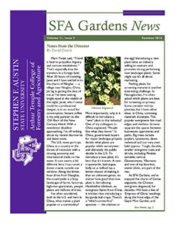 To view older newsletters or reports, submit your request to sfagardens@sfasu.edu.