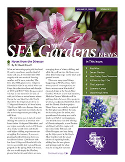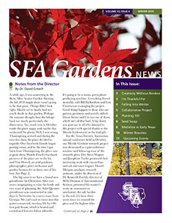 SFA Gardens publishes four newsletters per year — each corresponding with the change in season. Timely access to these newsletters is exclusive to SFA Garden members, and they are made available in our archives near the start of the new calendar year.