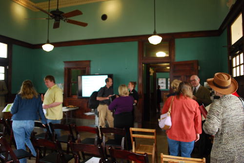 The opening of the Nacogdoches Train Depot went off with complete success, ushering nearly 60 visitors! According to the City of Nacogdoches website, "the present-day brick depot was built by Southern Pacific and opened April 3, 1911; less than a year after the original wooden building, built in May 1910, burned to the ground after being struck by lightning. In August of 1954 Southern Pacific terminated passenger services through Nacogdoches. The railroad depot is the only surviving passenger depot on the old HE&WT line. The depot was listed on the National Register of Historic Places in 1992. Future plans for the depot include a museum depicting the importance of all transportation in the early development of Nacogdoches."Source: http://www.ci.nacogdoches.tx.us/departments/rrdepot.php