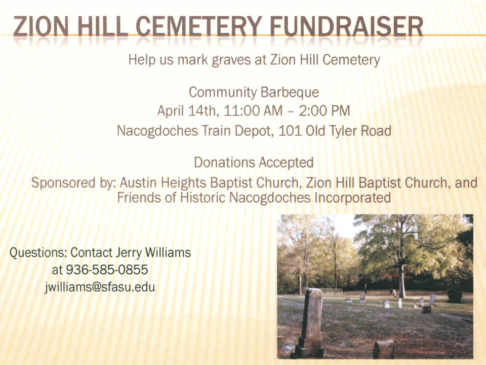 The Zion Hill Cemetery Fundraiser has been postponed to May 19, 2012. The times and location are still the same.Current News