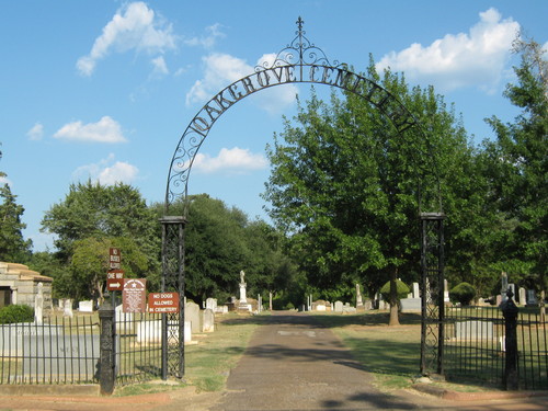- Description: Large well-maintained cemetery surrounded by decorative cast iron fence; most of cemetery is covered with San Augustine grass; however, a handful of graves are swept and mounded; many are curbed; vegetation includes magnolia, lagustrum, holly, cedar, and other trees; markers are upright, flat, false crypt, and mausoleum.