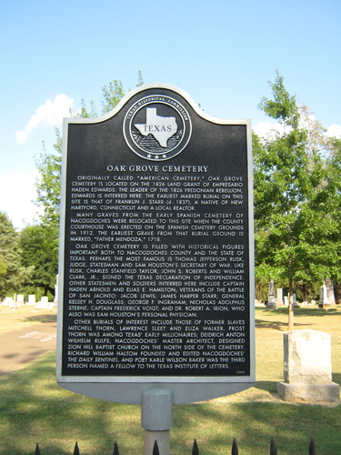 Oak Grove Cemetery is found on the 1922 Sanborn Map of Nacogdoches sheet 7 in the UT Perry-Castenada Collection.2011_Summer_Survery_Form_Oak_Grove.pdf