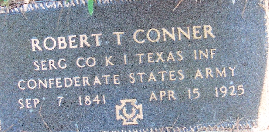The last Confederate buried on Peason Ridge, Sgt. Robert T. Conner also rests with his wife Elizzebeth in the Merritt and Conner Cemetery. They were brother and sister in laws to Edmon and Eliza Merritt. Robert Conner was a member of the famed 1st Texas Infantry serving in Company K. His ancestors still reside in the Milam, Hemphill, and Newton areas. Robert and his unit fought in the Army of Northern Virginia where at First Manassas, Robert was wounded. He again was wounded at Suffolk Virginia in 1863. He was transferred to Louisiana in time to fight at Mansfield, La. and be wounded there, but he continued south with General Taylor's army and was slightly wounded at Monette's Ferry, where the Yankees captured him! Wounded 4 times and was captured! What a combat record!