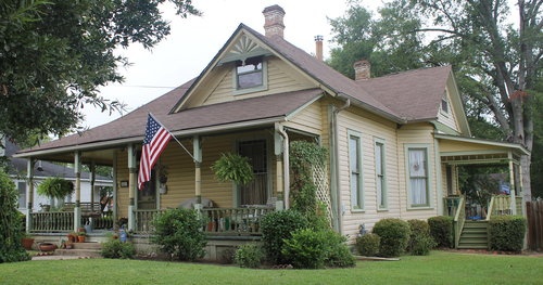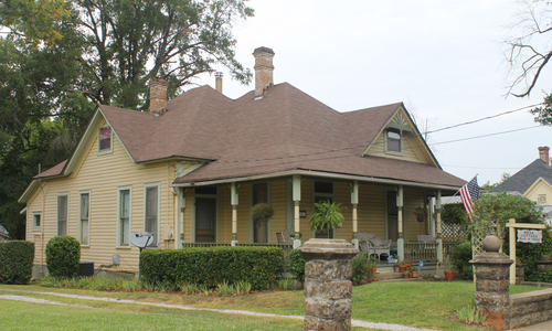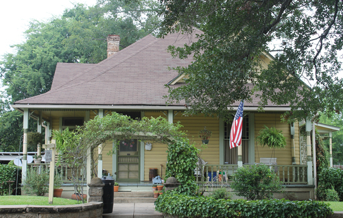 The 1900 Rose Cottage is a one-story, frame, Folk Victorian structure with a wrap around front porch suppoted by decorative wooden columns.