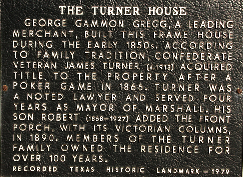 The James Turner House became a TX Historical Landmark in 1979.Architectural Survey