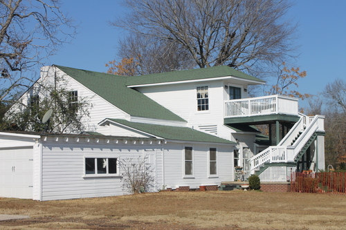 • Description: The Anderson home is a Greek Revival frame farm house. The one and a half story cottage was designed with an open hall dividing the first level with two rooms on each side. The front gallery is supported by six square pillars that are set within the roof. The front door is surrounded by two double-hung sash windows.
