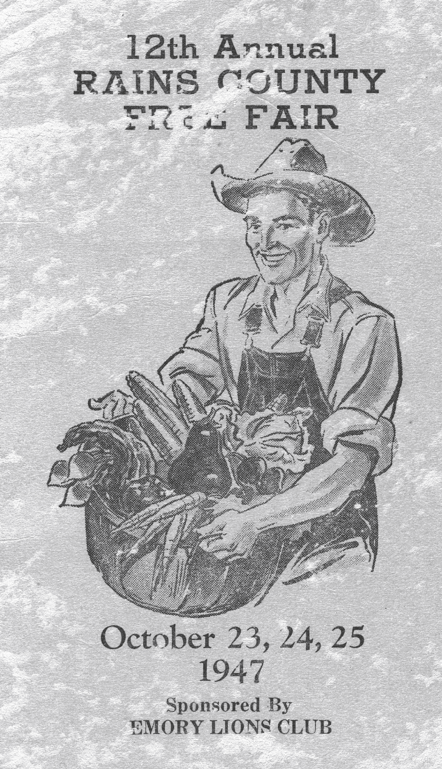 When the Rains County fair began all the comunity schools had a big part in the fair. On Friday of the fair week, all schools had a holiday so they could go to Emory to participate in the Rains County Fair Parade. The teachers and students gathered at the Emory schoolhouse and lined up according to district number for the parade. Students and teachers dressed up "top notch". They marched down the street to the courthouse and around the courthouse square. When the parade was over, each school had a booth displaying school projects in an empty building.