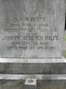 - Diedrich and Johanne Rulfs Headstone at Oak Grove Cemetery, Nacogdoches, Texas.