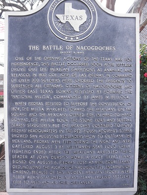 - Battle of Nacogdoches Historical Marker, 206 East Main Street, Nacogdoches, Texas, http://digital.sfasu.edu/cdm/ref/collection/StoneFort/id/237 .