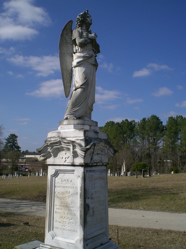 Just north of downtown Jefferson, far from the roar of October's motorcycle engines and the jingle/jangle of Mardi Gras beads in March, lays a quiet sanctuary. Here, under the shade of magnolias, cedars, crape myrtles and oaks, stone angels stand silent watch over Jefferson's pioneers. The sanctuary is Oakwood Cemetery.