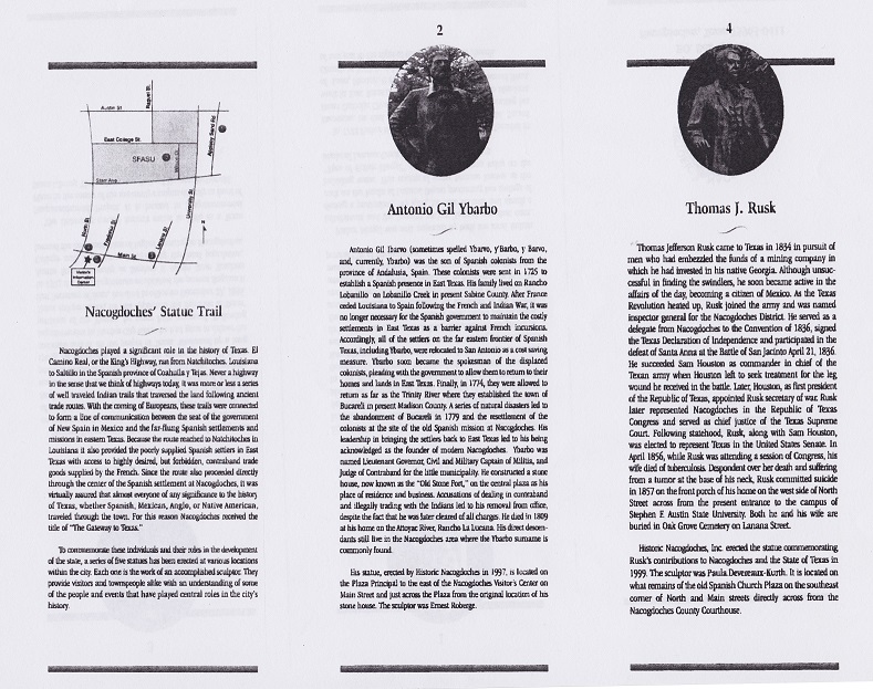 For more information about the Statue Trail, please visit the Friends of Historic Nacogdoches, Inc.'s webpage at http://fohninc.weebly.com