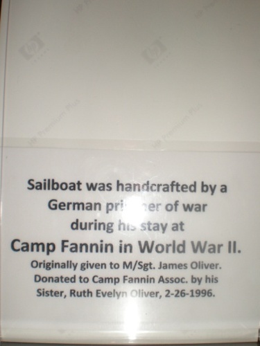 One of the prisoners who had access to the camp's wood working shop, built the model sloop shown below. His hand crafted vessel is now on display at the Smith County Historical Society's museum.