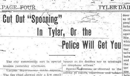 As popular as the song was in the mid-50's, it may have been banned in Tyler if introduced in 1919. The prim and proper citizens of Smith County's largest city passed ordinances against, among other things, "making goo-goo eyes!" Specifically, the ordinance, passed on December 31, 1918 stated: