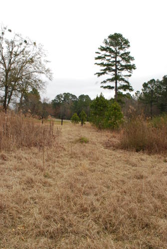 The original FM 1645 roadbed (looking north) ran in front of the old Walker Store directly in front of Miss Lou Wheeler's store and house.