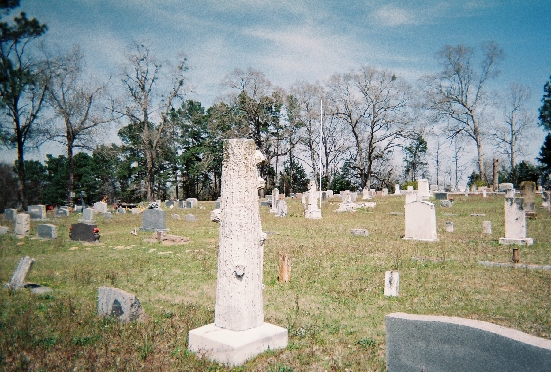 "This is a peaceful cemetery. Lots of my wife's relatives are buried here, but I like it because it's where Greg Grant found my two rescue dogs! I took a photo of the WOW headstone because my wife has a photo of her grandfather in front of one like it. It might be the same one because he used to tend the graveyard at Pleasant Grove."