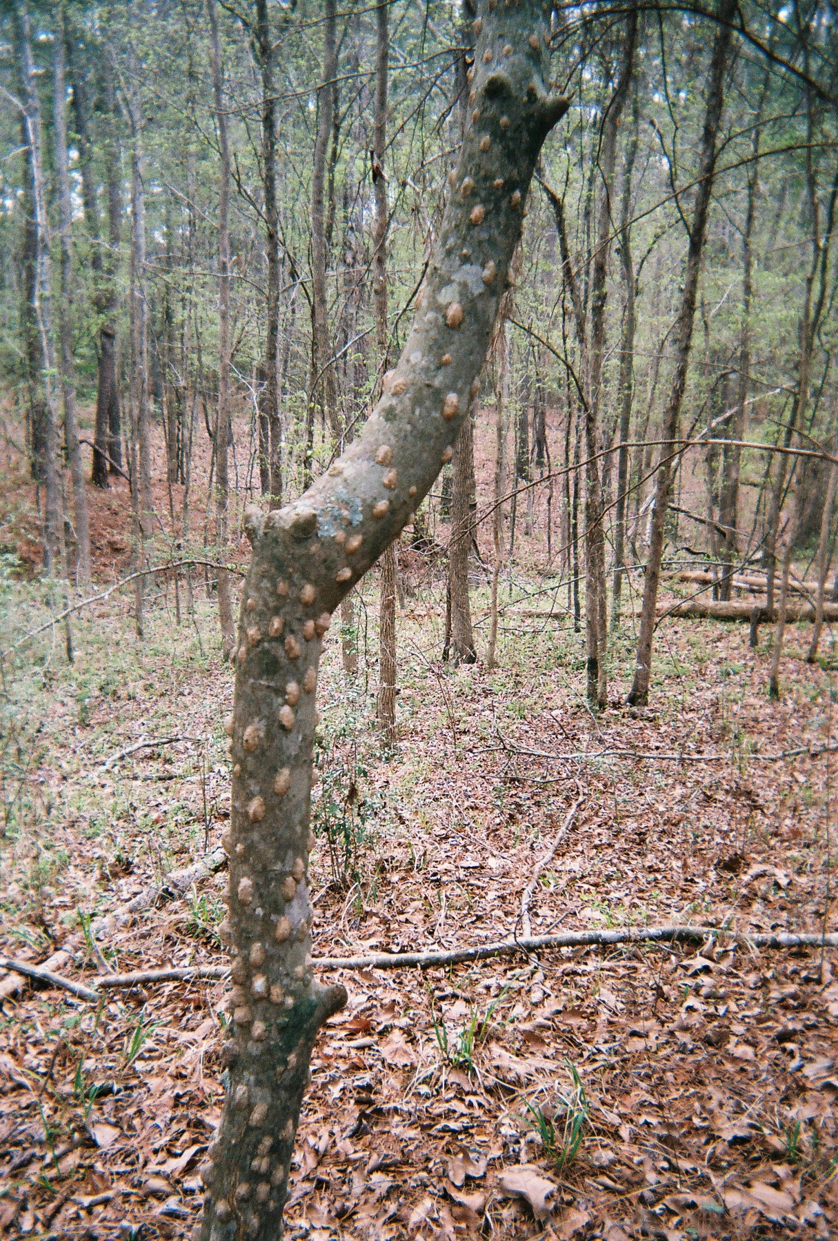 "Examples of the toothache tree are seen around the Emanis property. According to home remedies, if chewed, something in the tree would deaden the inside of the mouth to relieve toothache. I think this in interesting and wonder what other plants around here were used as remedies."