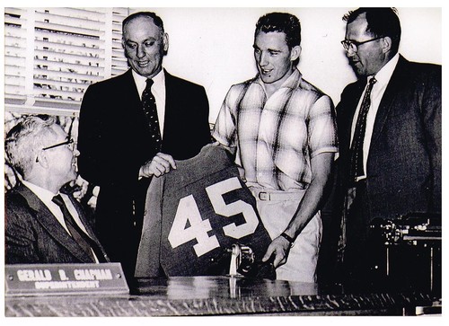 At one point, Jim returned to Rusk and was photographed in Superintendent Chapman's office as his number was retired. I asked Jim for a quote regarding this image and he shared, "A great time in my life. Marshall Treadwell was the first coach who ever told me I could be as good as I wanted to be…"