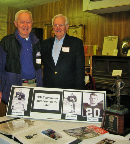 Jim led the Horned Frogs to consecutive conference championships in 1955 and '56, resulting in back to back trips to the Cotton Bowl. Twice named All-American, runner up for the Heisman Trophy and once received a letter of apology written by the head football coach at the University of Alabama dated Oct. 16, 1956.