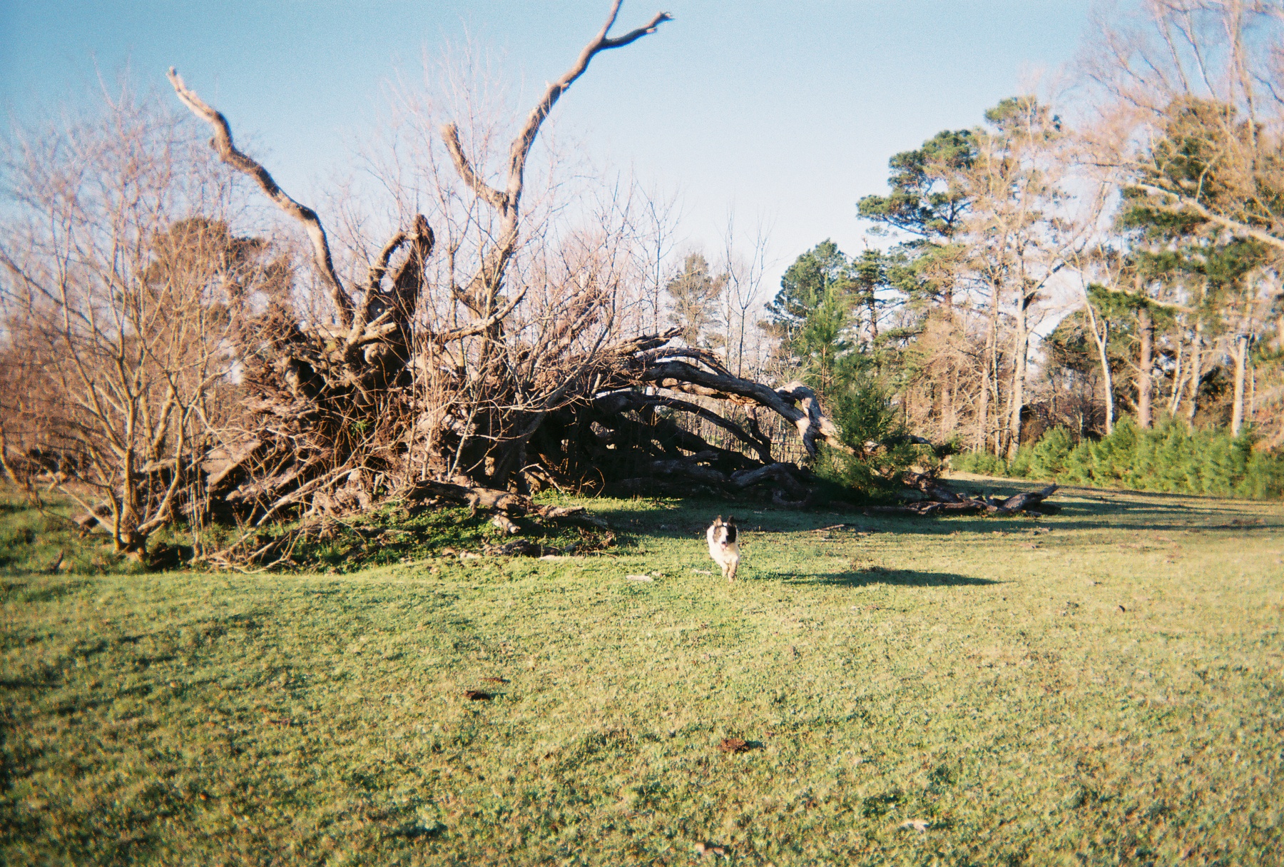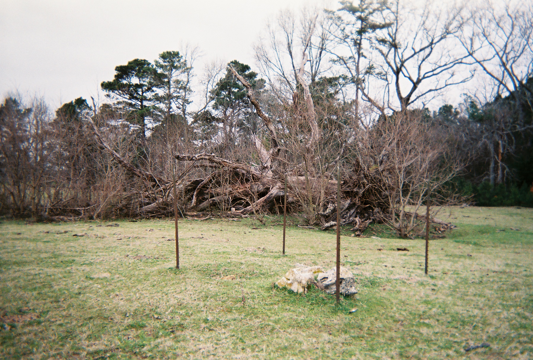 "This was the old Collie place in the early 1900s - My Grand Father owned it, I think. In January 1940 we had about 35 days of sleet & snow. I hunted Rabbits & Dove & Coon in the snow & made bird traps & used corn for bait. You could hear limbs & tree tops breaking from the ice on them. That is when [the] PULP - wood [industry got started] [Planks were] 14' long [and were] started [and] loaded by hand."