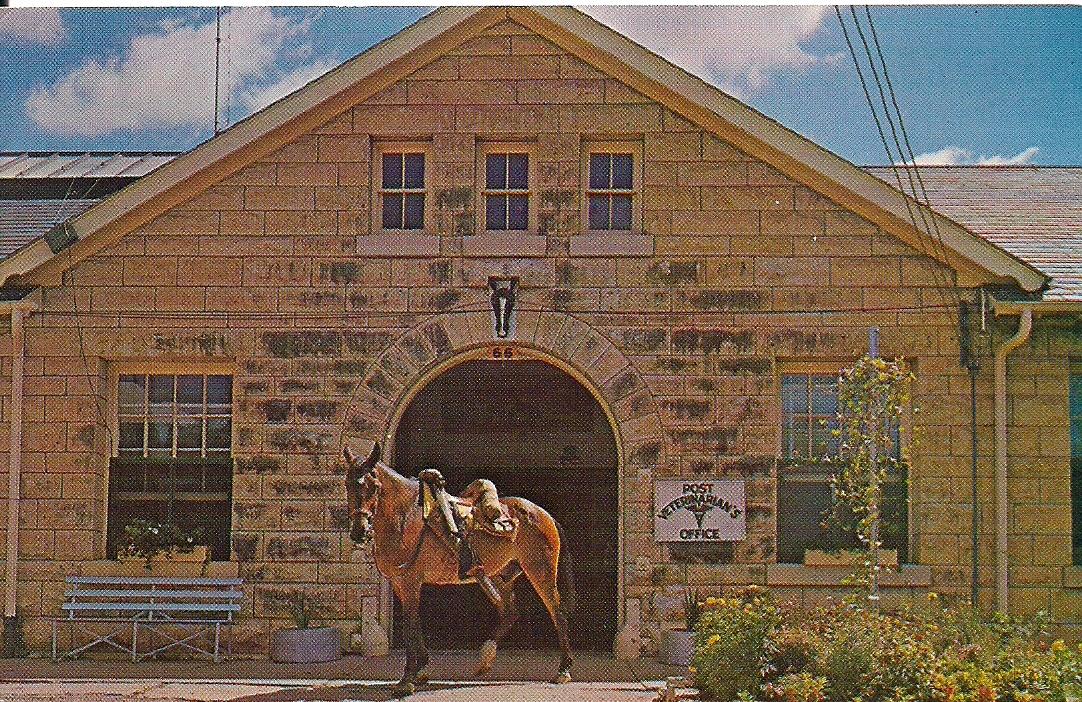Chief, with full cavalry equipment, standing in front of the Fort Riley Veterinarian Office. (Rickey Robertson Collection).
