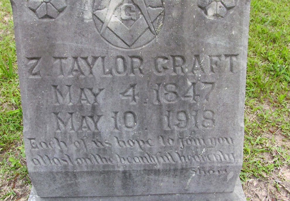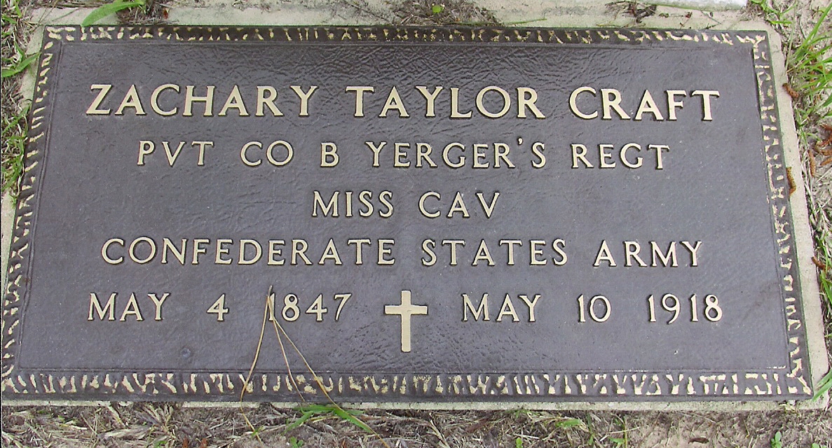 Confederate gravemarker for Zachary Taylor Craft in Elizabeth Chapel Cemetery. (Rickey Robertson Collection)