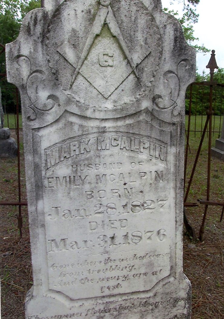 Confederate gravemarker for Mark McAlpin in Elizabeth Chapel Cemetery. (Rickey Robertson Collection)