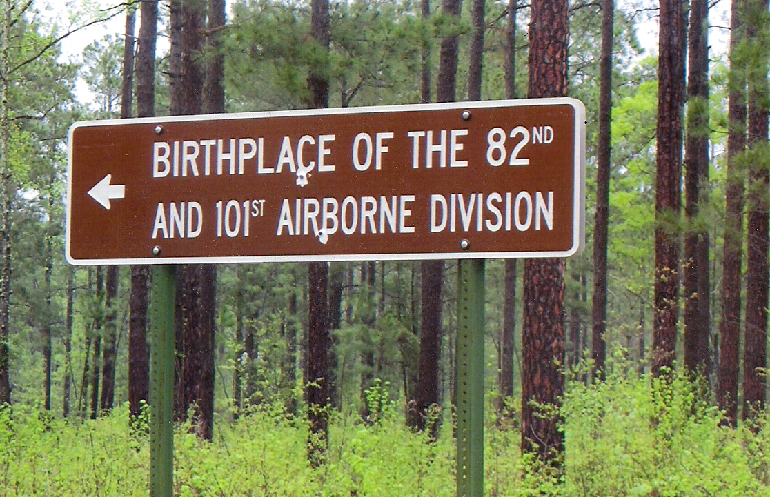 Sign showing the public the location where the 82nd and 101st Airborne Divisions were formed at Camp Claiborne, LA (Robertson Collection)