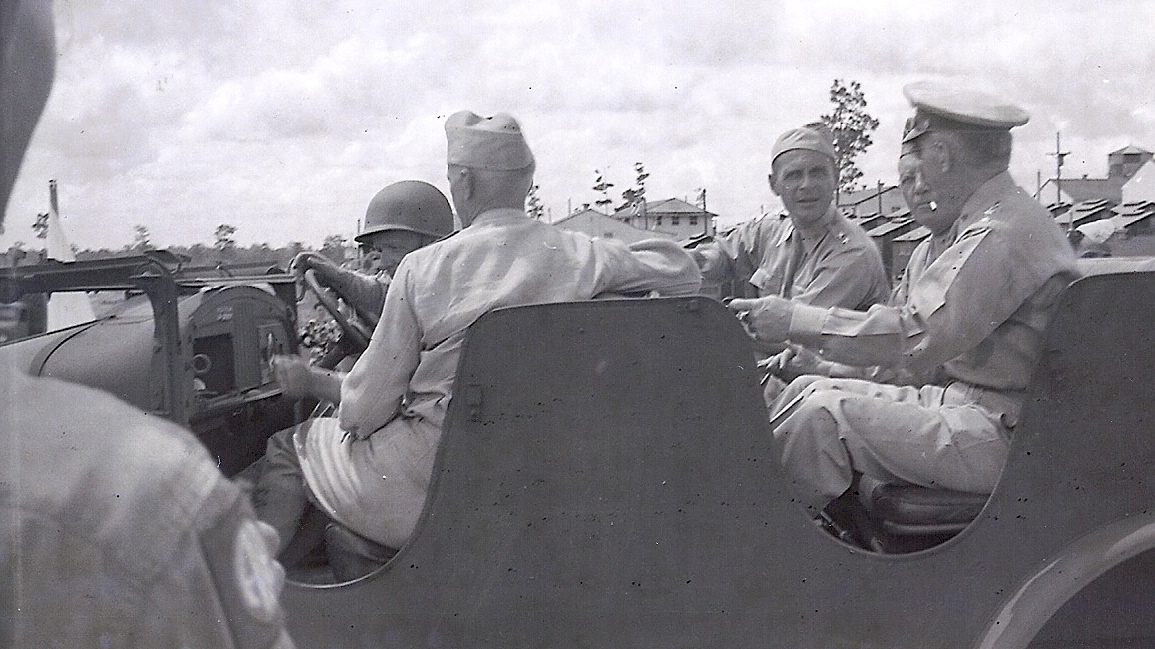 General Matthew Ridgway, new commanding general of the 82nd Airborne, enroute to the formation ceremony (Robertson Collection)