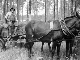 Turpentine wagon hauling the resin from the woods to the still site for processing. (Robertson Collection)