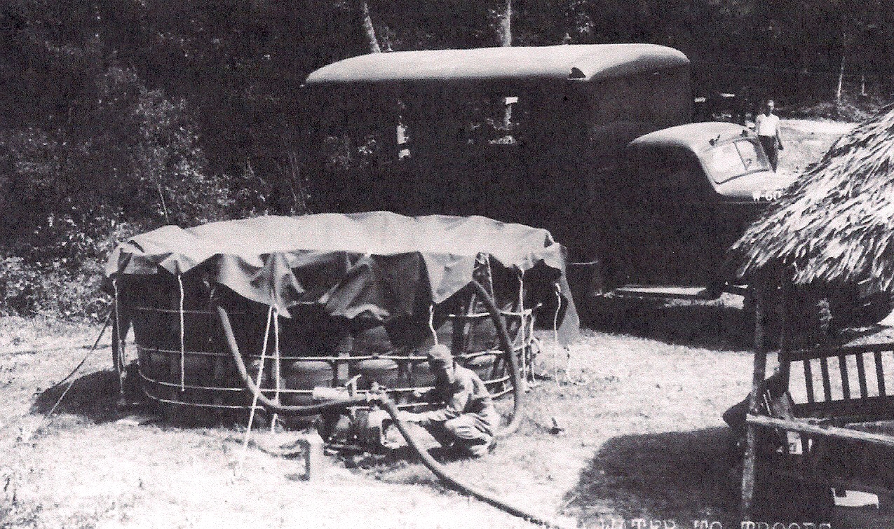 Portable water purification units were set up throughout the maneuver area to provide much needed fresh water to the troops. (Robertson Collection)
