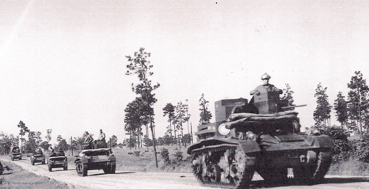 Convoy of light tanks during the Louisiana Maneuvers in Sabine Parish. A tank crew like this gave the author's father and uncle their precious can of gasoline. (Robertson Collection)