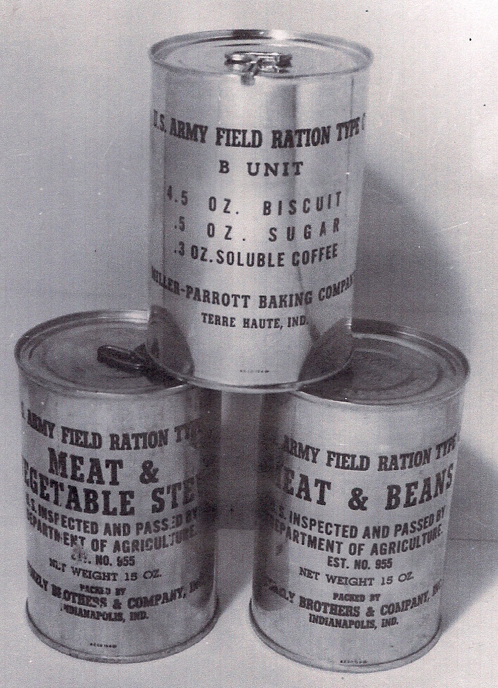 Early issue C-rations that were issued as field rations during the Louisiana Maneuvers. Remember the soldiers throwing these to you as a kid? (Robertson Collection)