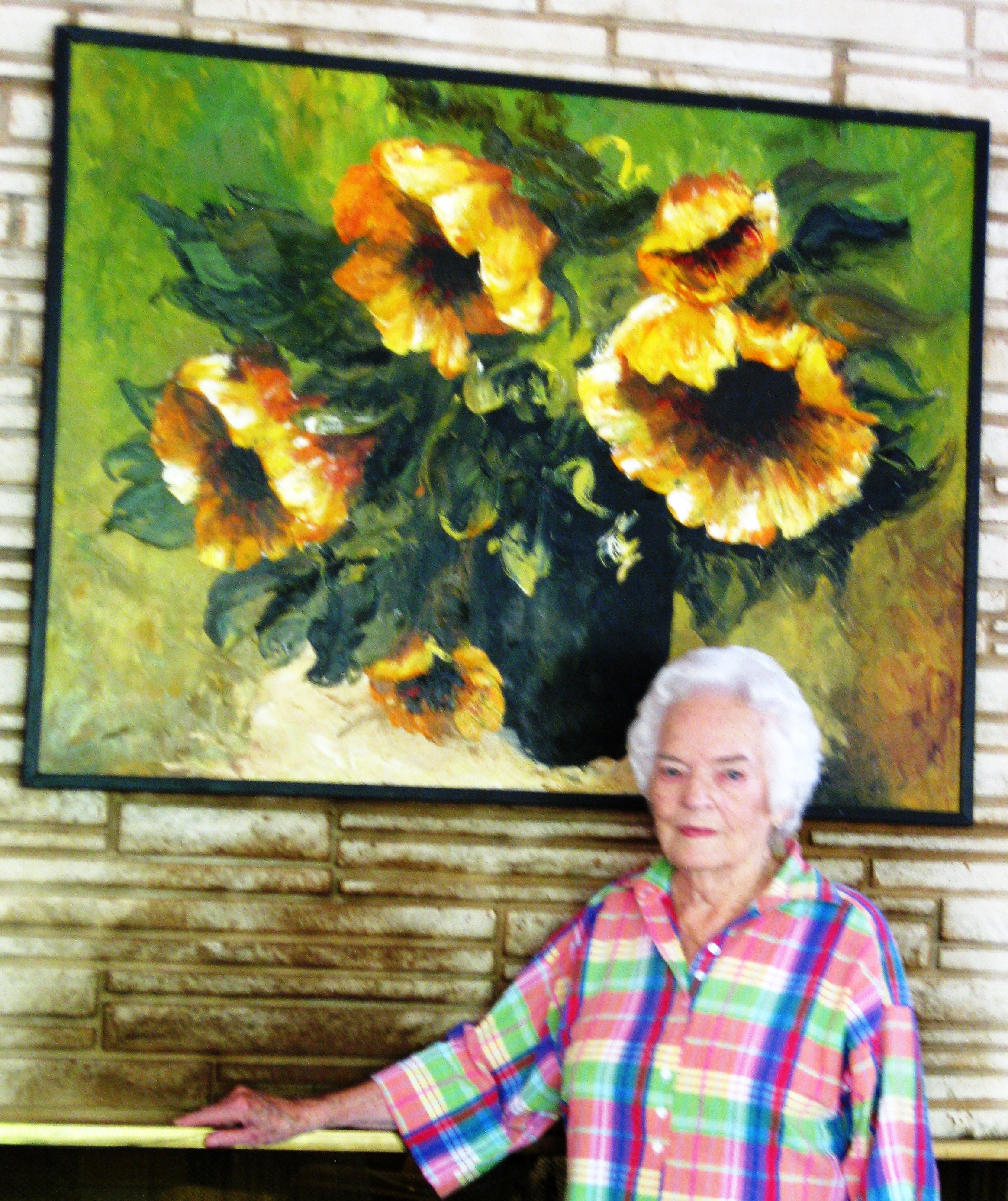 Ruth Nichols stands in front of one of her paintings during an interview with Deborah Burkett in August 2009.