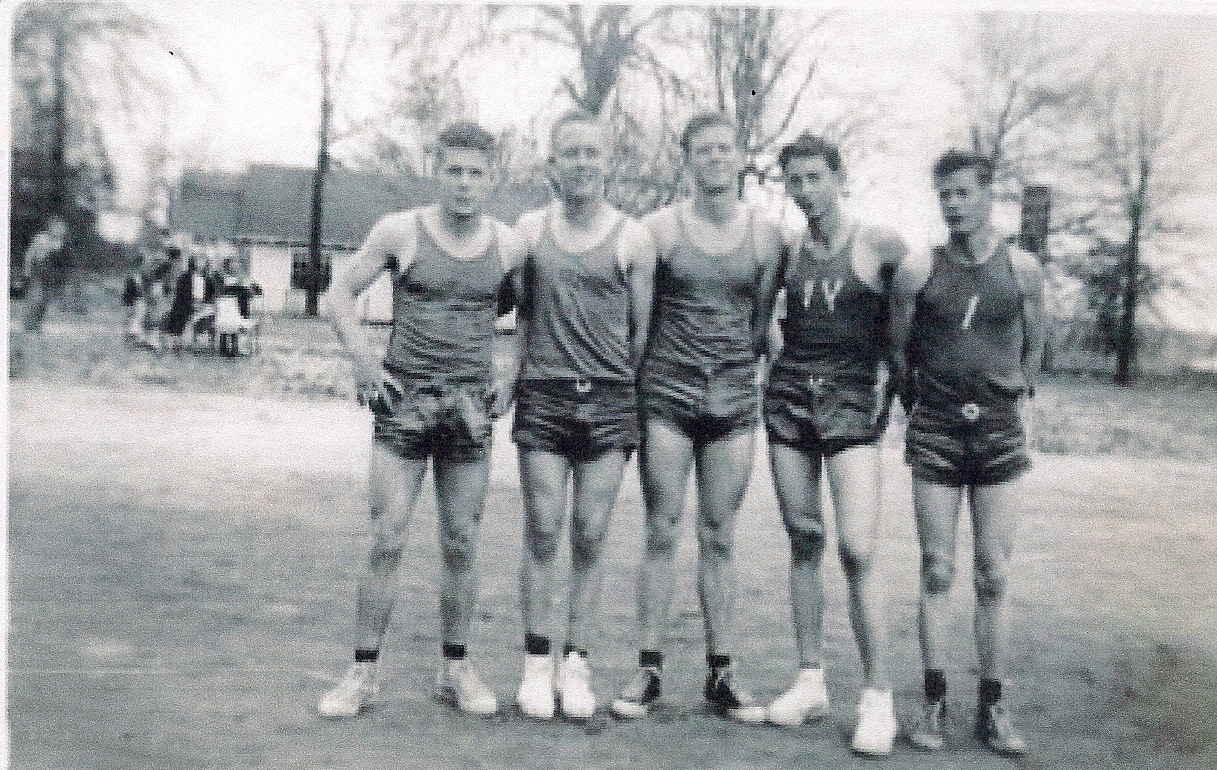 Plainview Panther's Boys Basketball Team 1952. Left to right Red Jones, James Hilton, Tom Jones, Victor Ellzey, and Billie Dowden. (Robertson Collection)