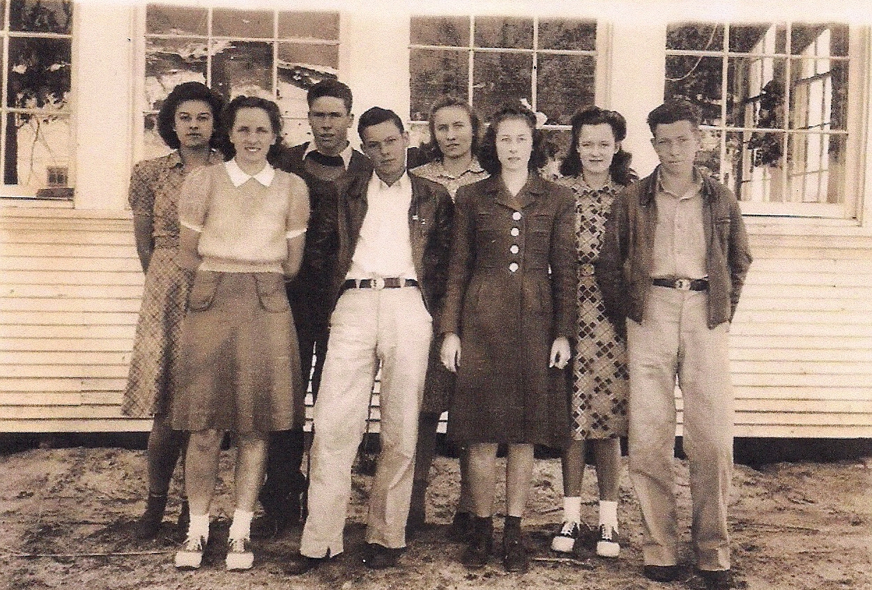Plainview Class of 1942. Bobbie Robertson, first boy on front row, was killed in action in 1944 during World War II. Last boy on front row is Hester Sales and last girl on second row is Clydell Dowden. (Kile/Robertson Collection)
