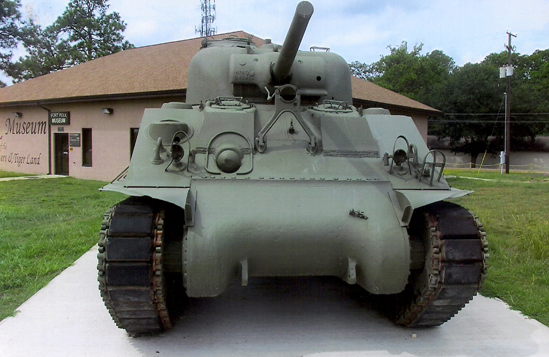 Front view of the old Sherman at the Fort Polk Museum. (Robertson Collection)