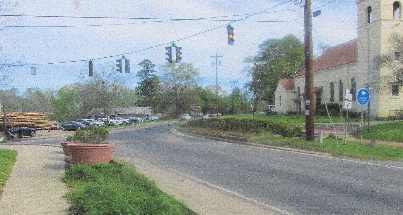 This is the intersection where the 2nd Armored Division became ensnarled in a traffic jam during the 1941 Louisiana Maneuvers and the site of General Patton bringing order to the chaos of the traffic jam. Photo taken in March 2016. (Robertson Collection)