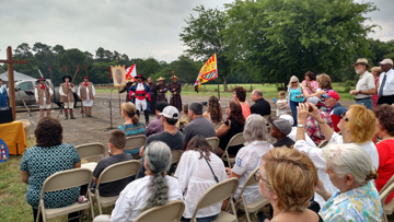 The ceremony was held July 5th on Highway 21, approx. 5 1/2 miles west from the four-way stop in Alto. The location was at a large pull off on the side of road next to the relocated 1936 Mission state historical marker. After the event, a complimentary lunch was served at a reception held at the Caddo Mounds Museum, sponsored by the Friends' Group and the Cherokee County Historical Commission. Special thanks to Tony Souther and Rachel Galan and the entire staff at Caddo Mounds Sate Historic Site and to Jeff Williams, President of the Caddo Friends' Group. Their support has been greatly appreciated.