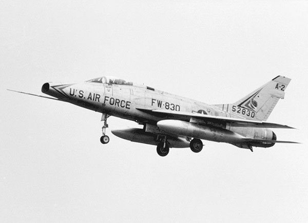 F-100 Super Sabre jet such as was flown by Captain James C. Fey (Courtesy U.S. Air Force)
