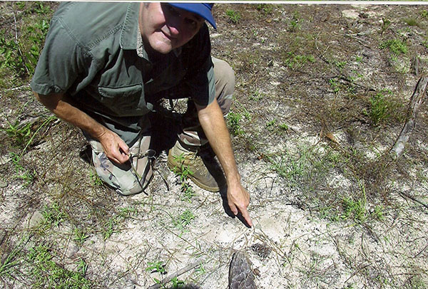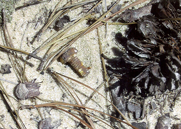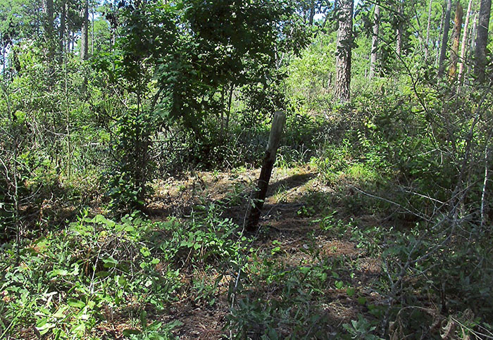 Crash site location of the F-100 piloted by Captain James Fey in the Kisatchie Nation Forest. This is the area burned by the aviation fuel after the crash. (Robertson Collection)