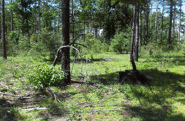 The forest land at the site of the F-100 crash in the Kisatchie National Forest. (Robertson Collection)