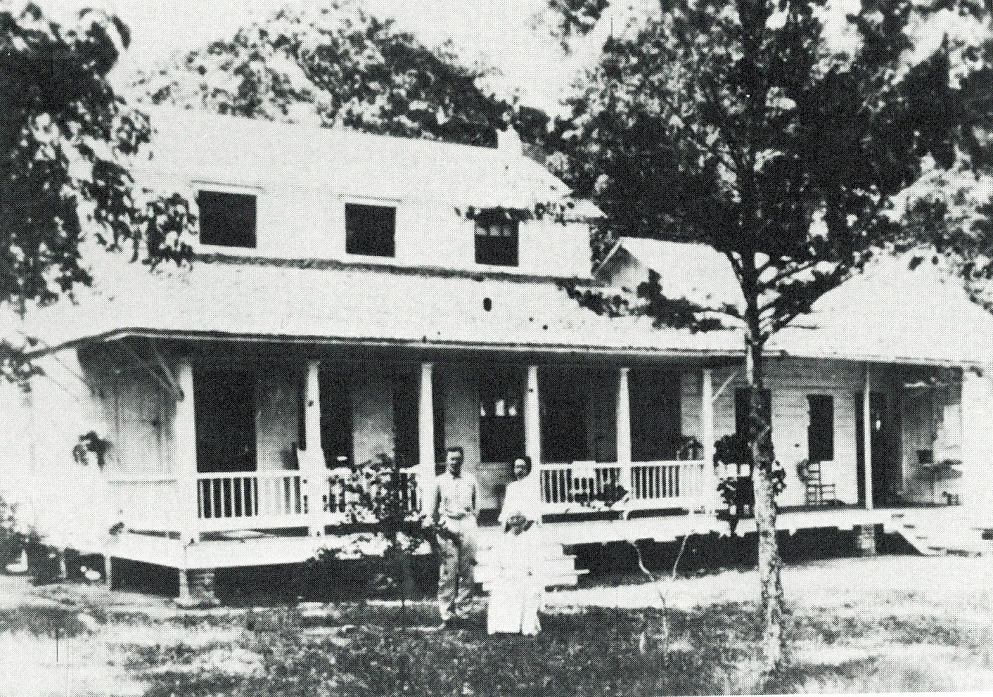 The broad gallery across the front of the Pivoto house was ideal for dancing, eating, and visiting. Guests would come for several days, the women sleeping upstairs and the men on the porch or ground.