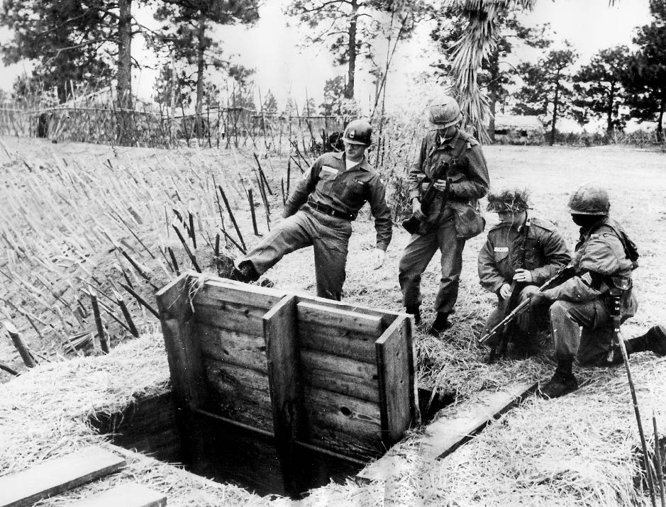 Tiger Village located on Peason Ridge was a large fortified villages that trainees had to attack and capture during their training at Fort Polk. (Robertson Collection)