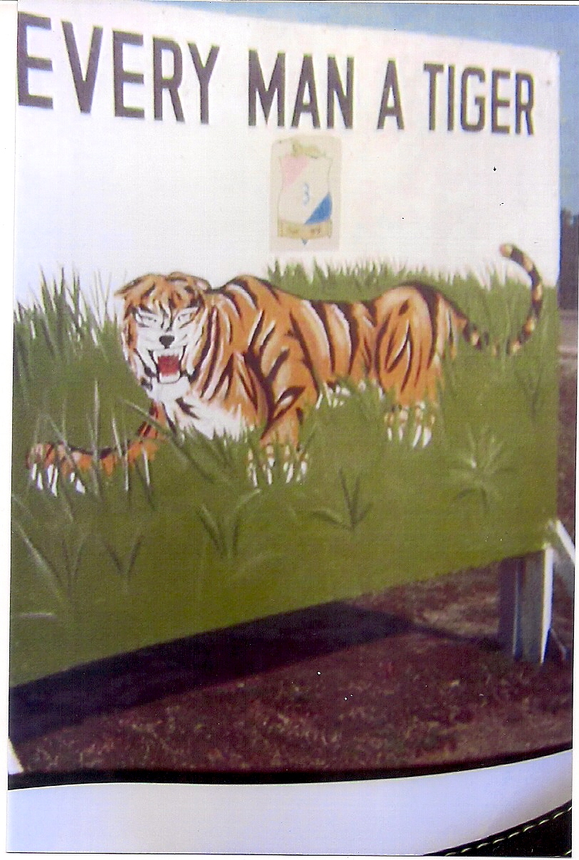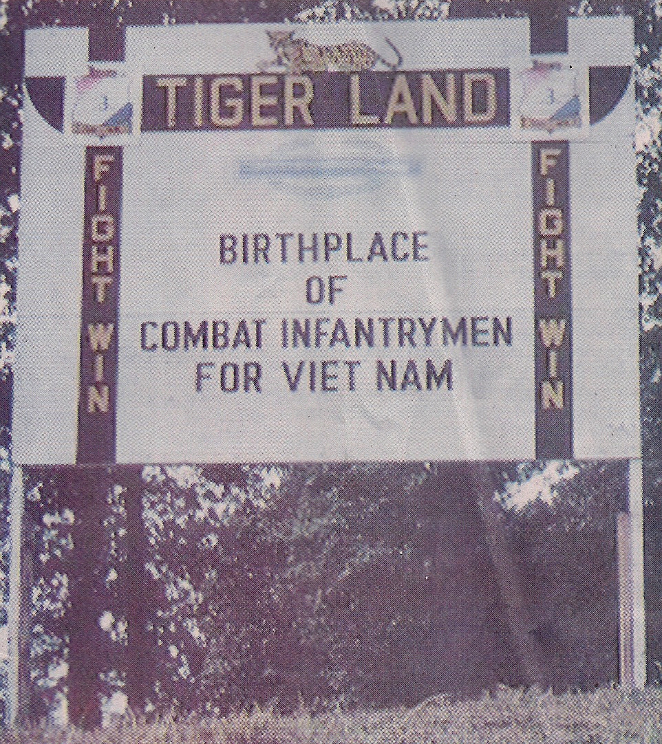 Sign at the entrance to Tiger Land at Fort Polk during the Vietnam War. Combat infantry training was given to all the soldiers who went through Tiger Land. (Robertson Collection)