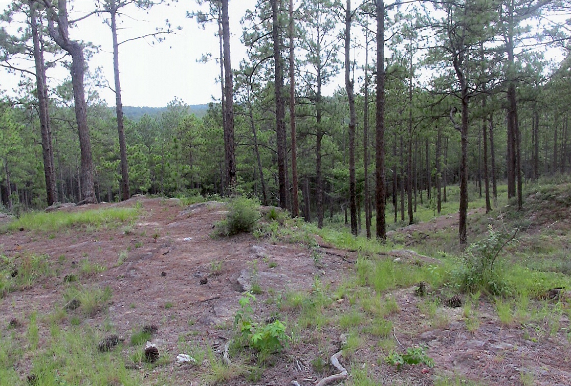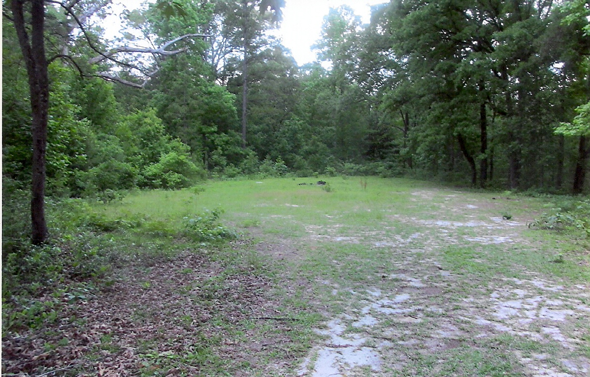 A photo taken of the exact location of the advancing trainees in the Vietnam Village at Kisatchie in July 2017. Old cartridge cases from rifles and machine guns are still found throughout the area. The forest has not reclaimed this site and it is easily recognized as a village site. (Robertson Collection)